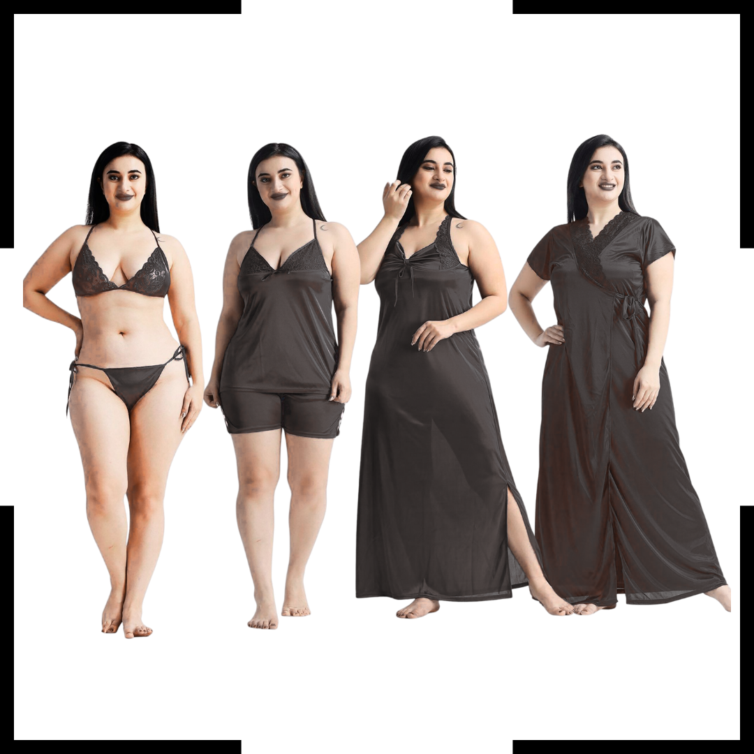 মসৃণ সাটিন কাপড়, সুন্দর লেইস ডিজাইন, আর একসাথে ৬টি স্টাইলিশ আইটেম 😍